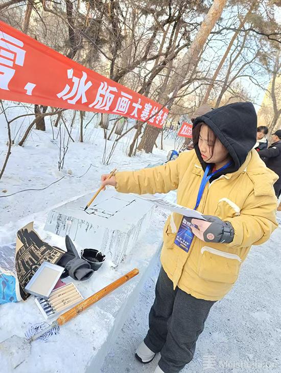黑龙江外国语学院学生正在参加冰版画创作大赛 黑龙江外国语学院供图