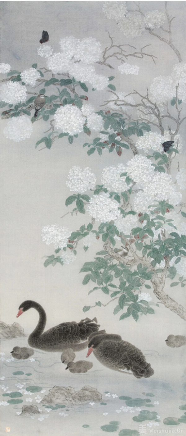 《曦月银芷》绢本设色 200x 60cm 2021年