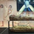 记者在现场看到,多件木乃伊亮相展览,包括塔·哈尔的木乃伊及其内棺、木乃伊猫、木乃伊鳄鱼、木乃伊纸板匣残片等。其中,塔·哈尔的木乃伊是一具女性木乃伊,出自古埃及阿赫米姆,其制作极为精良,并饰有陶釉珠网。内棺装饰精美,绘有带翼太阳女神、古埃及神话中的冥王“奥西里斯”等形象,头部顶端饰有佩戴圆形护符的圣甲虫。